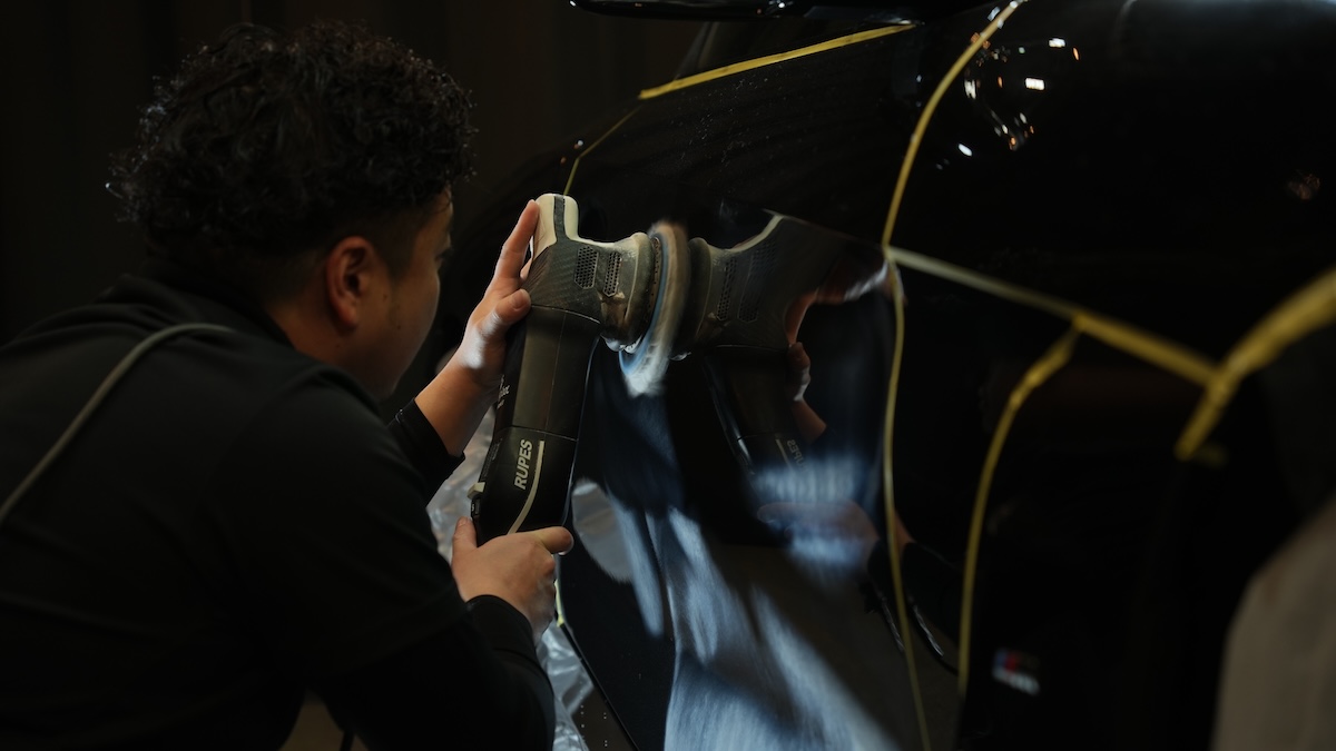 外部からの光や埃を完全に遮断した、壁も天井も黒一色の密閉ブース。これは単なる演出ではなく、塗装の「素肌」を正確に見極めるためのこだわりです。一般的な白壁の環境では光が乱反射して見落としてしまうミクロン単位の微細なキズやオーロラマークも、黒の空間と計算された特殊LED照明の下では決して隠れることができません。この「誤魔化しの効かない環境」で徹底的に磨き上げるからこそ、コーティングの性能を極限まで引き出す完璧な下地が完成します。高級車や希少車オーナー様にも、心から安心してお車をお預けいただける万全の環境をお約束します。
